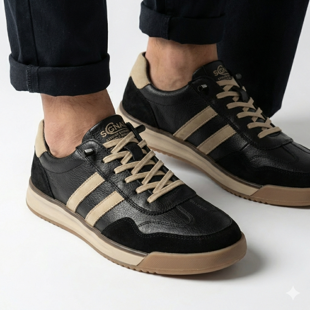 Baskets en Cuir Noir et Beige : L’Élégance Urbaine Rétro